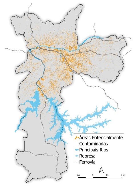 Figura 1 – Áreas potencialmente contaminadas cadastradas no município de São Paulo (Elaborado pelos autores, 2025). |