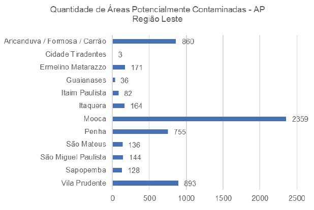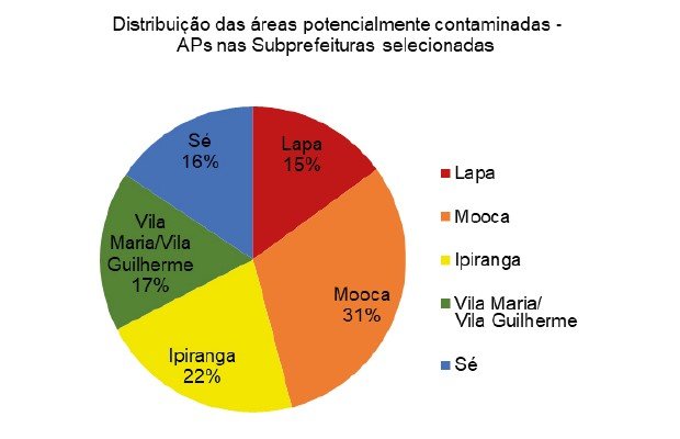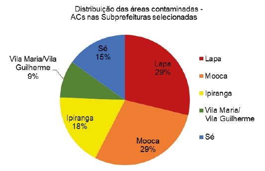Observa-se que nas Subprefeituras Vila Maria/Vila Guilherme (17%), Sé (16%) e Lapa (15%), os dados indicaram quantidades similares de áreas potencialmente contaminadas.