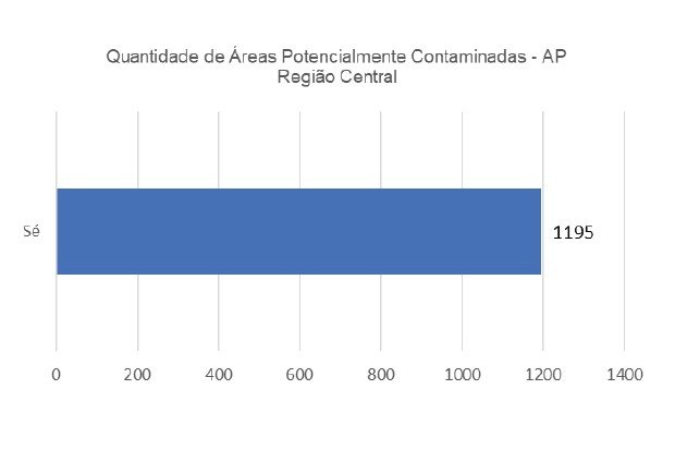 Para a Região Central, correspondente apenas à Subprefeitura Sé, constam 1.195 áreas cadastradas como potencialmente contaminadas, conforme observado na Figura 7.
